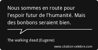 Nous sommes en route pour l'espoir futur de l'humanité. Mais des bonbons seraient bien.