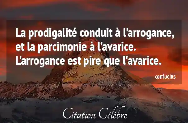 La prodigalité conduit à l'arrogance, et la parcimonie à l'avarice. L'arrogance est pire que l'avarice.