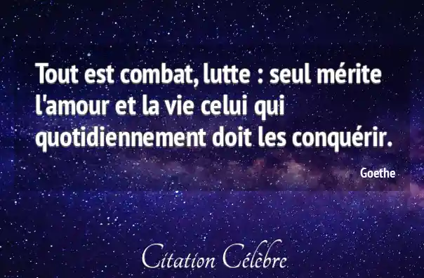 Tout est combat, lutte : seul mérite l'amour et la vie celui qui quotidiennement doit les conquérir.