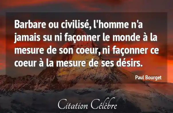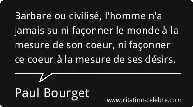 Barbare ou civilisé, l'homme n'a jamais su ni façonner le monde à la mesure de son coeur, ni façonner ce coeur à la mesure de ses désirs.