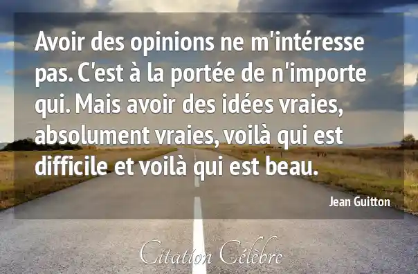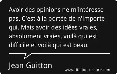 Avoir des opinions ne m'intéresse pas. C'est à la portée de n'importe qui. Mais avoir des idées vraies, absolument vraies, voilà qui est difficile et voilà qui est beau.
