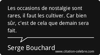 Les occasions de nostalgie sont rares, il faut les cultiver. Car bien sûr, c'est de cela que demain sera fait.