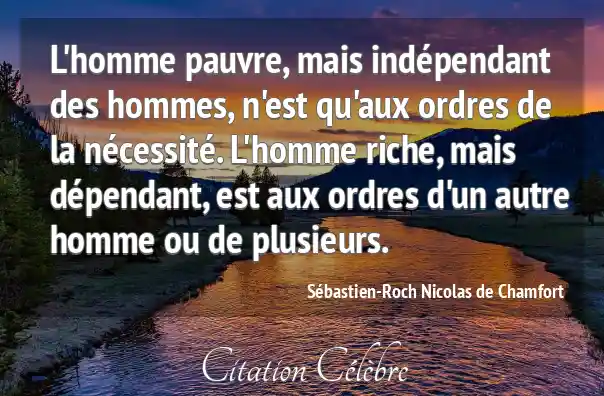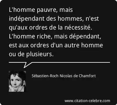 L'homme pauvre, mais indépendant des hommes, n'est qu'aux ordres de la nécessité. L'homme riche, mais dépendant, est aux ordres d'un autre homme ou de plusieurs.