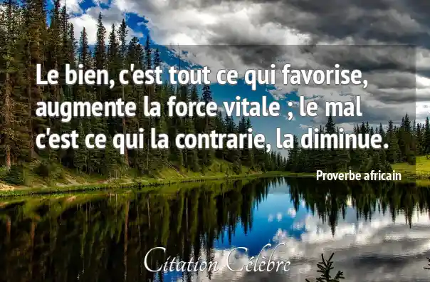 Le bien, c'est tout ce qui favorise, augmente la force vitale ; le mal c'est ce qui la contrarie, la diminue.