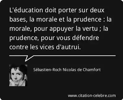 L'éducation doit porter sur deux bases, la morale et la prudence : la morale, pour appuyer la vertu ; la prudence, pour vous défendre contre les vices d'autrui.