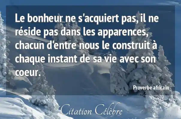 - Le bonheur n'est pas quelque chose que l'on peut acquérir (acheter, posséder, obtenir comme un objet).