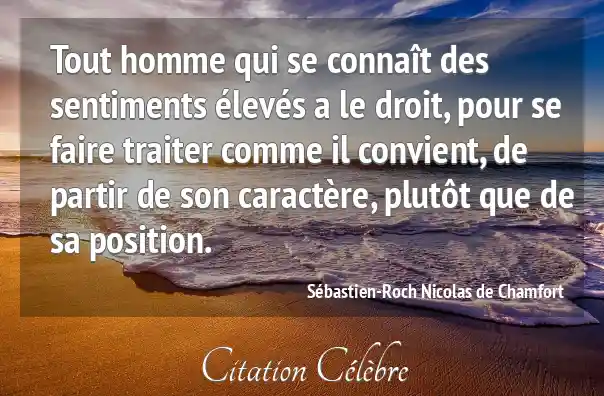 Tout homme qui se connaît des sentiments élevés a le droit, pour se faire traiter comme il convient, de partir de son caractère, plutôt que de sa position.