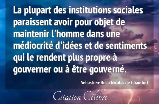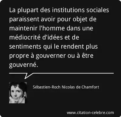 La plupart des institutions sociales paraissent avoir pour objet de maintenir l'homme dans une médiocrité d'idées et de sentiments qui le rendent plus propre à gouverner ou à être gouverné.