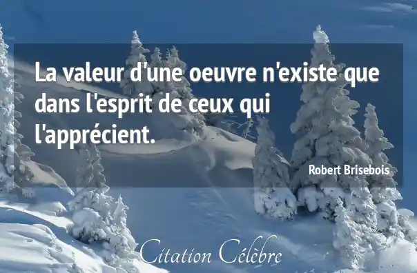 La valeur d'une oeuvre n'existe que dans l'esprit de ceux qui l'apprécient.