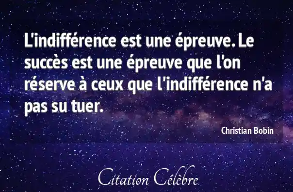 L'indifférence est une épreuve. Le succès est une épreuve que l'on réserve à ceux que l'indifférence n'a pas su tuer.