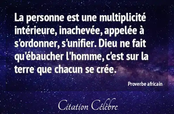 La personne est une multiplicité intérieure, inachevée, appelée à s'ordonner, s'unifier. Dieu ne fait qu'ébaucher l'homme, c'est sur la terre que chacun se crée.