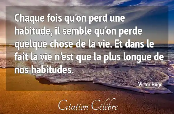 Chaque fois qu'on perd une habitude, il semble qu'on perde quelque chose de la vie. Et dans le fait la vie n'est que la plus longue de nos habitudes.