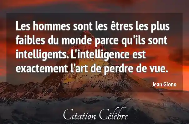 Les hommes sont les êtres les plus faibles du monde parce qu'ils sont intelligents. L'intelligence est exactement l'art de perdre de vue.