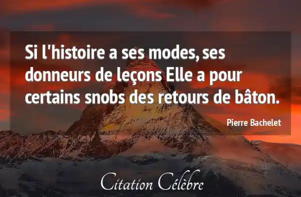 Si l'histoire a ses modes, ses donneurs de leçons Elle a pour certains snobs des retours de bâton.