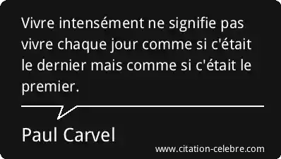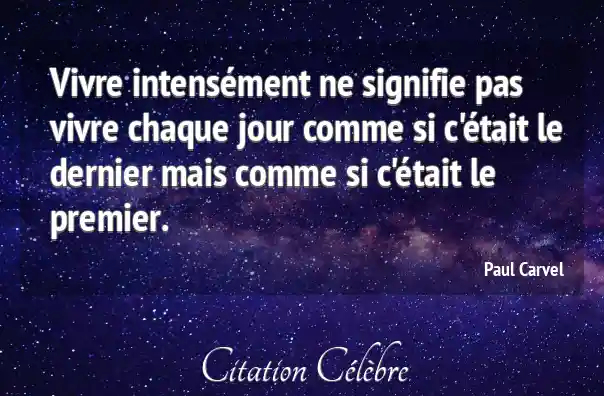 Vivre intensément ne signifie pas vivre chaque jour comme si c'était le dernier mais comme si c'était le premier.