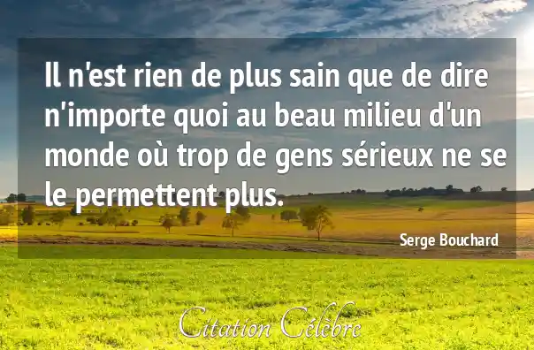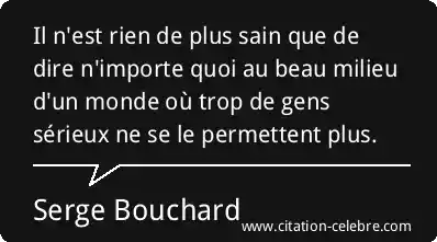 Il n'est rien de plus sain que de dire n'importe quoi au beau milieu d'un monde où trop de gens sérieux ne se le permettent plus.
