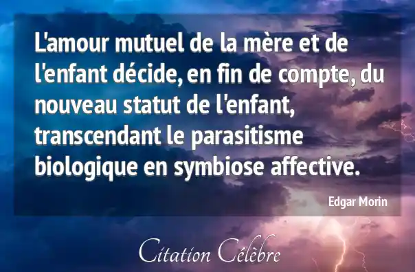 L'amour mutuel de la mère et de l'enfant décide, en fin de compte, du nouveau statut de l'enfant, transcendant le parasitisme biologique en symbiose affective.