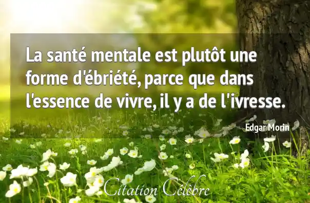 La santé mentale est plutôt une forme d'ébriété, parce que dans l'essence de vivre, il y a de l'ivresse.