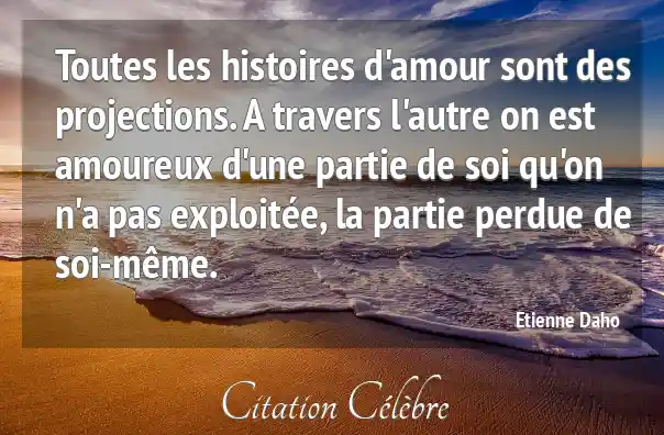 Toutes les histoires d'amour sont des projections. A travers l'autre on est amoureux d'une partie de soi qu'on n'a pas exploitée, la partie perdue de soi-même.