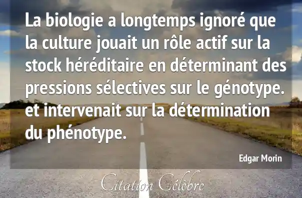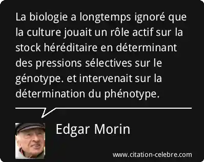 La biologie a longtemps ignoré que la culture jouait un rôle actif sur la stock héréditaire en déterminant des pressions sélectives sur le génotype. et intervenait sur la détermination du phénotype.