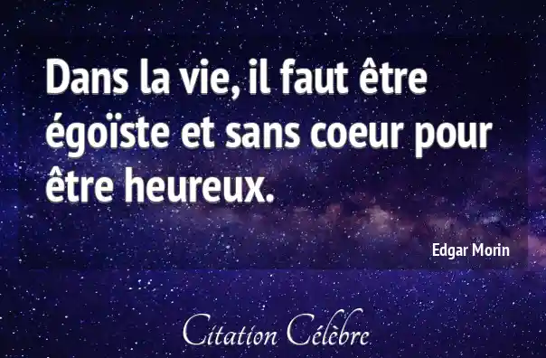 Dans la vie, il faut être égoïste et sans coeur pour être heureux.