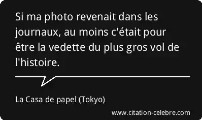 Si ma photo revenait dans les journaux, au moins c'était pour être la vedette du plus gros vol de l'histoire.
