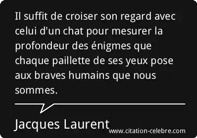 Il suffit de croiser son regard avec celui d'un chat pour mesurer la profondeur des énigmes que chaque paillette de ses yeux pose aux braves humains que nous sommes.