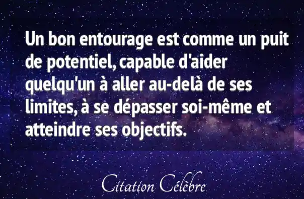 Un bon entourage est comme un puit de potentiel, capable d'aider quelqu'un à aller au-delà de ses limites, à se dépasser soi-même et atteindre ses objectifs.