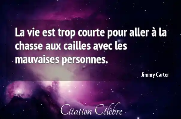 La vie est trop courte pour aller à la chasse aux cailles avec les mauvaises personnes.