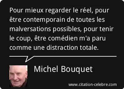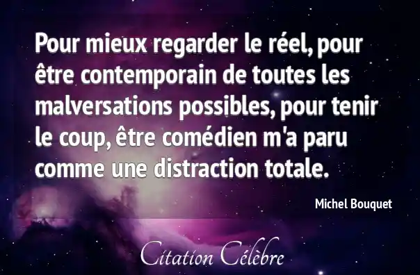 Pour mieux regarder le réel, pour être contemporain de toutes les malversations possibles, pour tenir le coup, être comédien m'a paru comme une distraction totale.