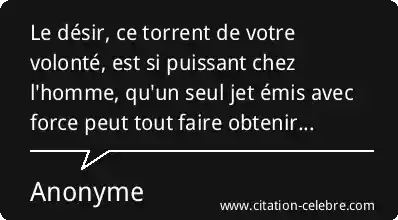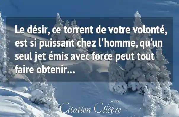Le désir, ce torrent de votre volonté, est si puissant chez l'homme, qu'un seul jet émis avec force peut tout faire obtenir...