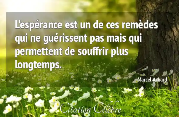 L'espérance est un de ces remèdes qui ne guérissent pas mais qui permettent de souffrir plus longtemps.