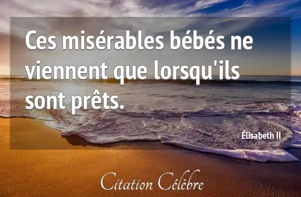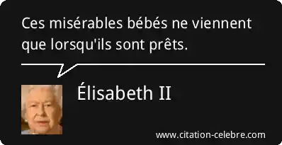 Citation Élisabeth II lorsqu : Ces misérables bébés ne viennent que lorsqu'ils sont prêts....