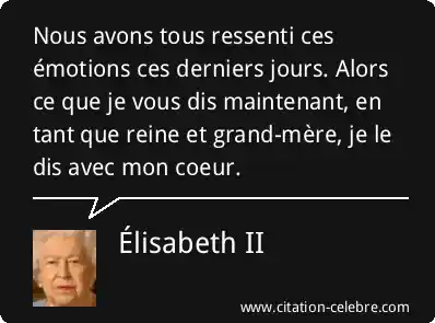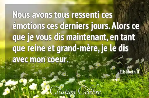 Nous avons tous ressenti ces émotions ces derniers jours. Alors ce que je vous dis maintenant, en tant que reine et grand-mère, je le dis avec mon coeur.