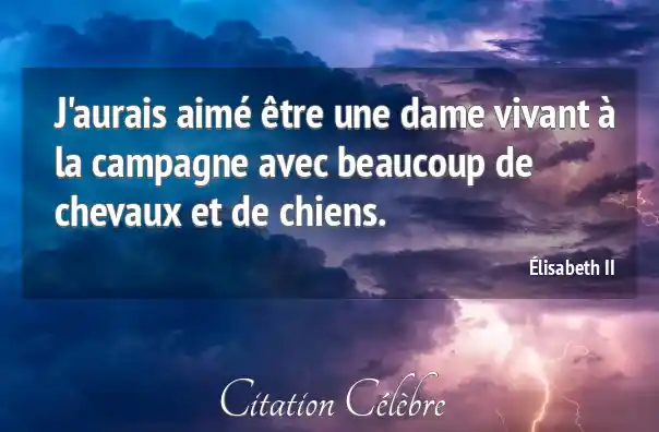 J'aurais aimé être une dame vivant à la campagne avec beaucoup de chevaux et de chiens.