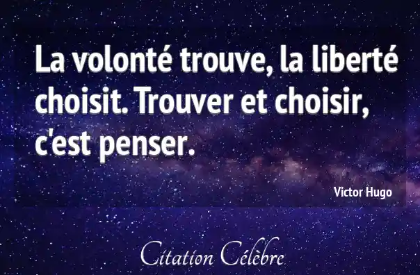 La volonté trouve, la liberté choisit. Trouver et choisir, c'est penser.