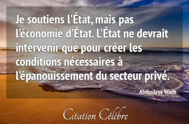 Je soutiens l'État, mais pas l'économie d'État. L'État ne devrait intervenir que pour créer les conditions nécessaires à l'épanouissement du secteur privé.