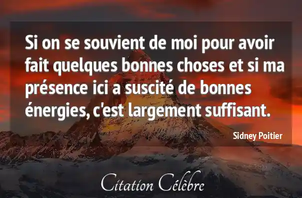 Si on se souvient de moi pour avoir fait quelques bonnes choses et si ma présence ici a suscité de bonnes énergies, c'est largement suffisant.