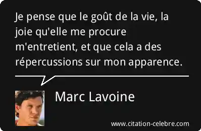 Je pense que le goût de la vie, la joie qu'elle me procure m'entretient, et que cela a des répercussions sur mon apparence.