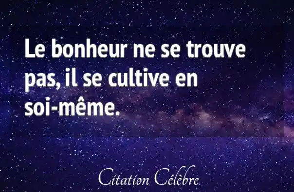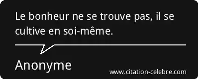 Le bonheur ne se trouve pas, il se cultive en soi-même.