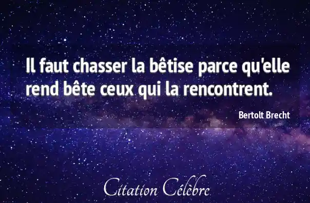 Il faut chasser la bêtise parce qu'elle rend bête ceux qui la rencontrent.