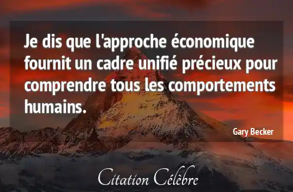 Je dis que l'approche économique fournit un cadre unifié précieux pour comprendre tous les comportements humains.