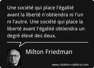 Une société qui place l'égalité avant la liberté n'obtiendra ni l'un ni l'autre. Une société qui place la liberté avant l'égalité obtiendra un degré élevé des deux.