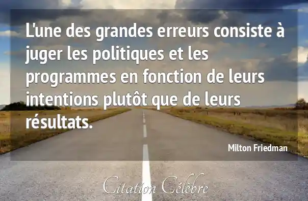 L'une des grandes erreurs consiste à juger les politiques et les programmes en fonction de leurs intentions plutôt que de leurs résultats.