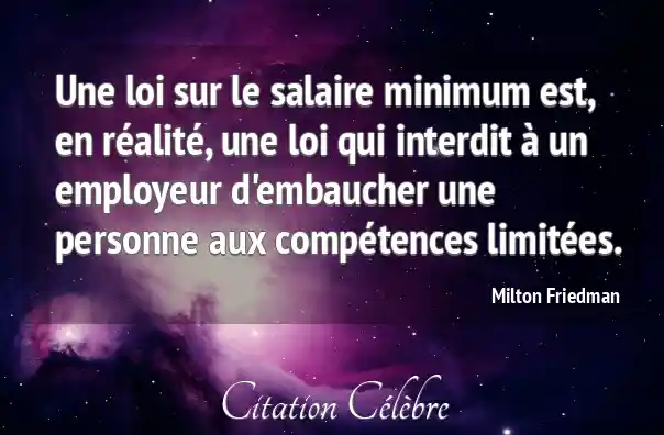 Une loi sur le salaire minimum est, en réalité, une loi qui interdit à un employeur d'embaucher une personne aux compétences limitées.