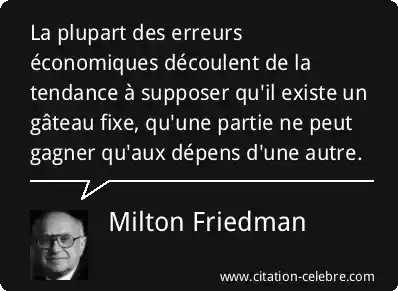 La plupart des erreurs économiques découlent de la tendance à supposer qu'il existe un gâteau fixe, qu'une partie ne peut gagner qu'aux dépens d'une autre.