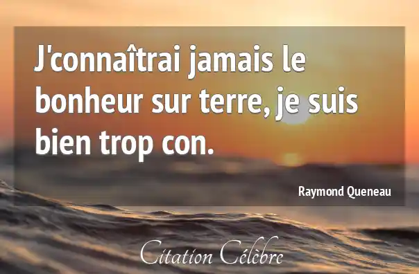 J'connaîtrai jamais le bonheur sur terre, je suis bien trop con.