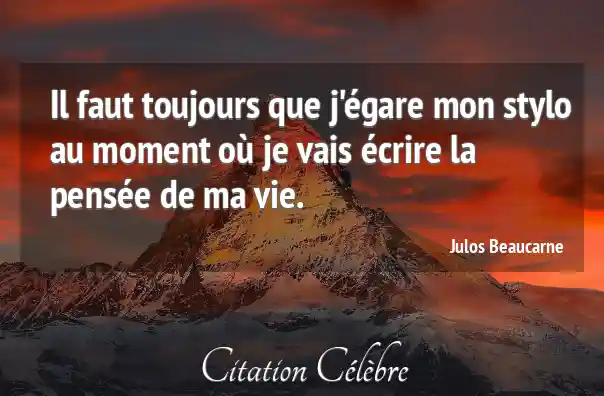 Il faut toujours que j'égare mon stylo au moment où je vais écrire la pensée de ma vie.