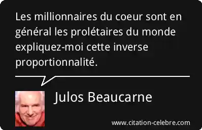 Les millionnaires du coeur sont en général les prolétaires du monde expliquez-moi cette inverse proportionnalité.
