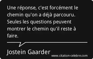 Une réponse, c'est forcément le chemin qu'on a déjà parcouru. Seules les questions peuvent montrer le chemin qu'il reste à faire.